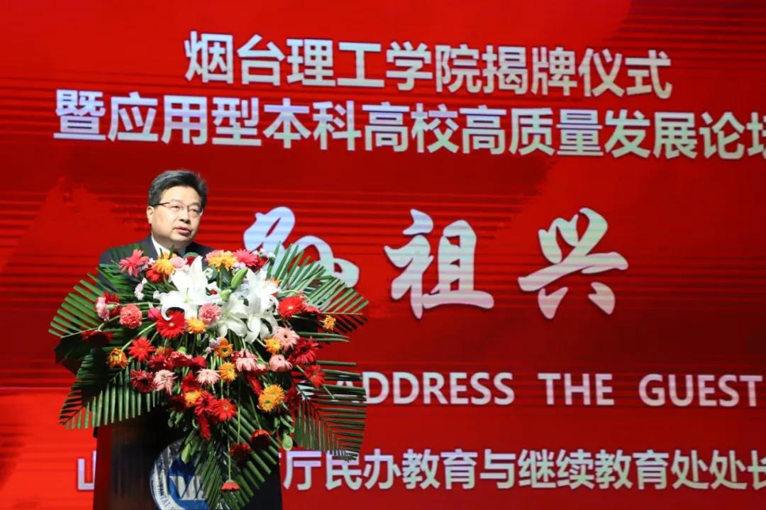 山东省教育厅民继处处长孙祖兴在致辞中对烟台理工学院科学的办学理念、良好的办学氛围给予了高度评价。他希望,烟台理工学院不断提高政治站位、明确办学定位,为教育事业发展开好局、走好路,为社会培养更多的栋梁之才。