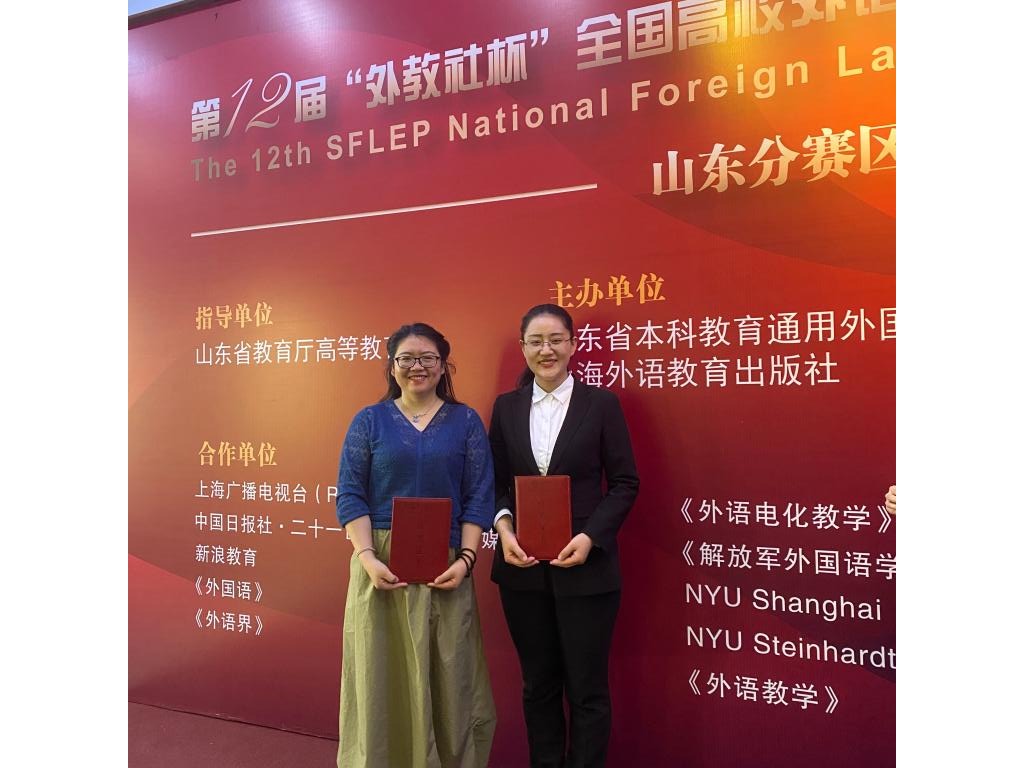 2021年5月22日至5月23日,烟台理工学院外国语学院青年教师张婧、卢洁芳代表学院参加了第十二届“外教社杯”全国高校外语(山东赛区)教学大赛。本次大赛经过复赛、决赛的激烈角逐,最终我院两位教师脱颖而出,分别荣获山东赛区二等奖的佳绩。