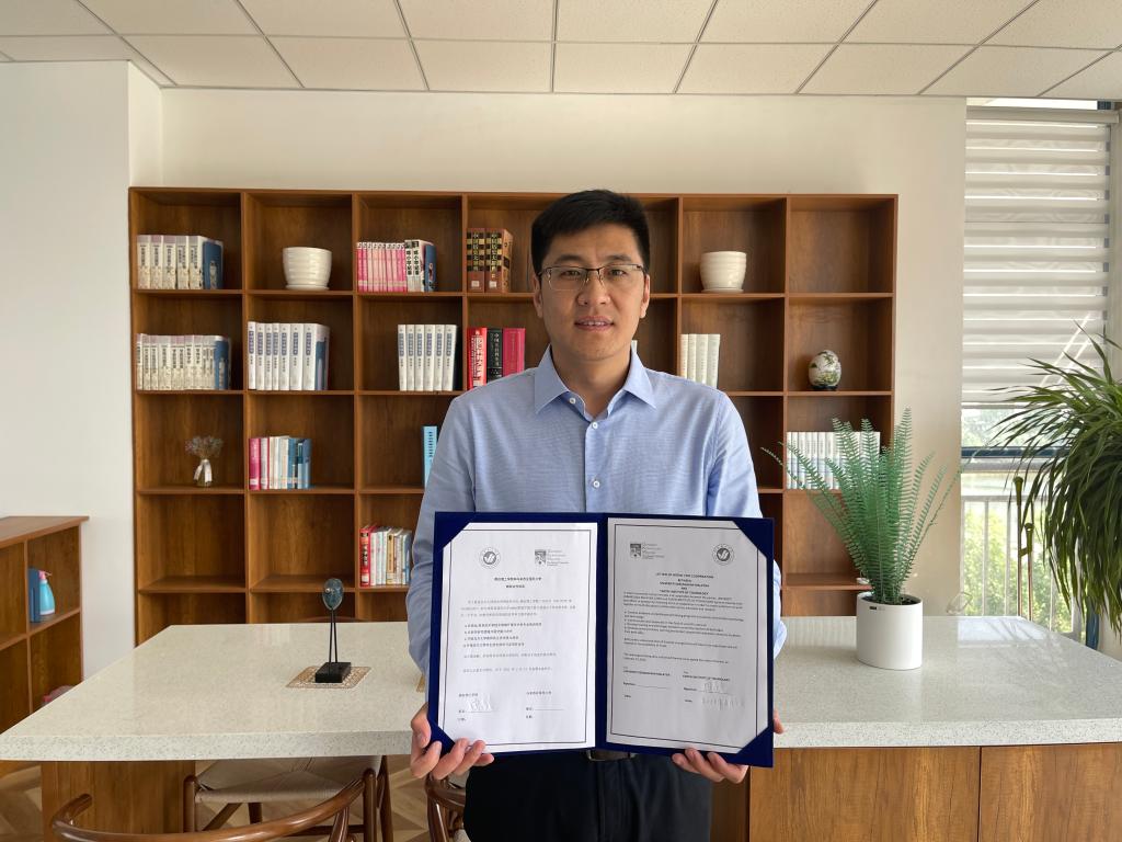 学校副校长夏毅、马来西亚国民大学国际部处长Prof.Datuk分别代表双方线上签署备忘录,并云合影留念。