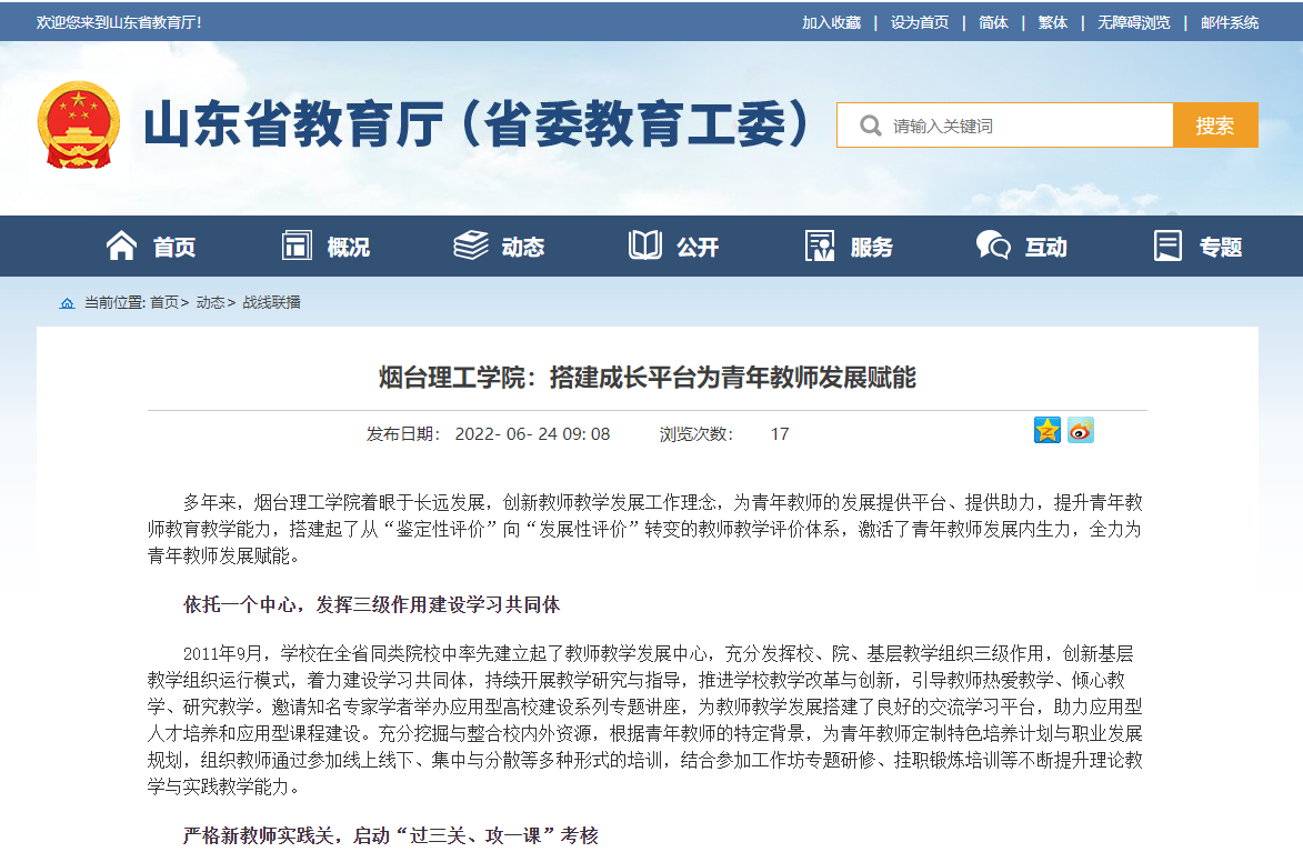 多年来,烟台理工学院着眼于长远发展,创新教师教学发展工作理念,为青年教师的发展提供平台、提供助力,提升青年教师教育教学能力,搭建起了从“鉴定性评价”向“发展性评价”转变的教师教学评价体系,激活了青年教师发展内生力,全力为青年教师发展赋能。