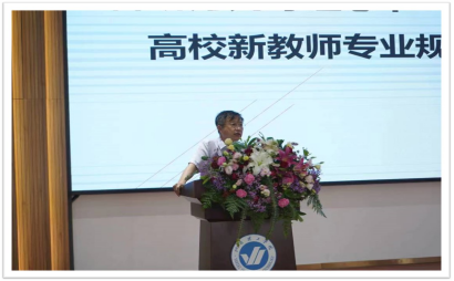 苏春景副校长为新入职教师做了题为《科研为先导理念下高校新教师专业规划的设计与思考》的专题报告。报告中他首先阐述了高校科研工作的重要性,结合新时代的教育理念,对应用型高校青年教师如何做好科研工作以实现自身专业化成长进行了详细的阐述。
