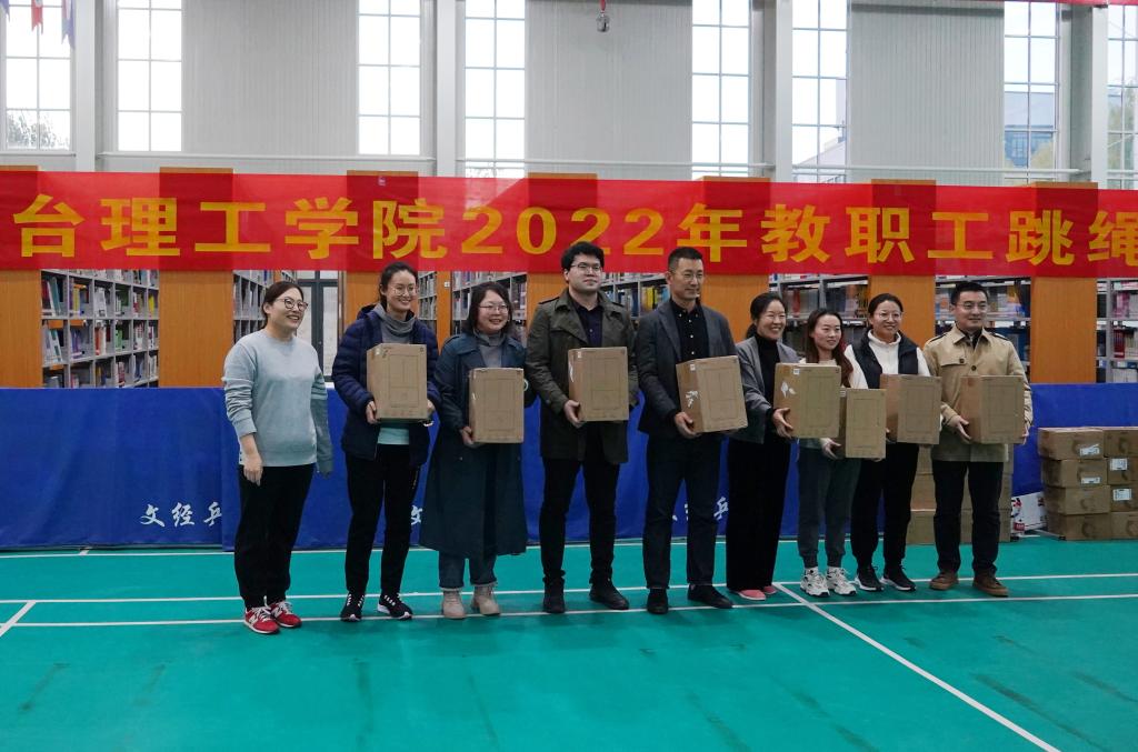经过一个多小时的激烈角逐,决出了本次比赛的前六名,分别为人工智能学院队、学工团委队,图书馆队、教工一队、机电工程学院队、食品与生物工程学院队,其中人工智能学院队以85跳的佳绩获得一等奖。在热烈的气氛下,校领导们为获奖队伍依次颁奖。