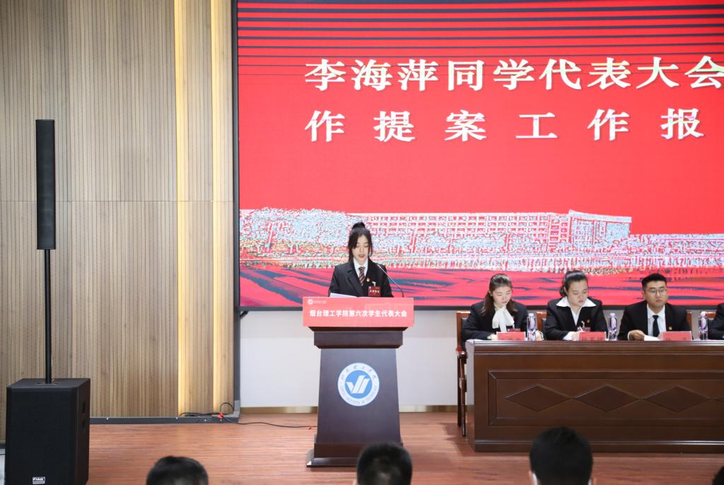大会审议通过了《烟台理工学院第五届学生会工作报告决议》《烟台理工学院学生提案工作报告决议》。182名与会代表通过无记名投票选举产生了杨舒媛等17人组成的烟台理工学院第六届学生委员(常任代表),王耀增等5人组成的第六届学生会主席团。新当选学生会主席团代表郭新建作表态发言。