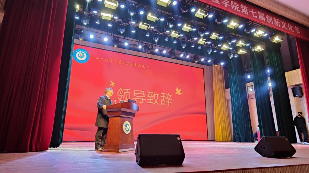 青春献礼二十大,时代工匠创未来。11月25日晚,机电工程学院第七届创新文化节在综合楼一楼报告厅顺利举办。副校长苏春景,校长助理莫红菊、校长助理杜娟,党委组织统战部部长张琼玉、校团委书记申海滨、教务处副处长徐嵩杰以及机电工程学院各位老师和同学参加此次活动。