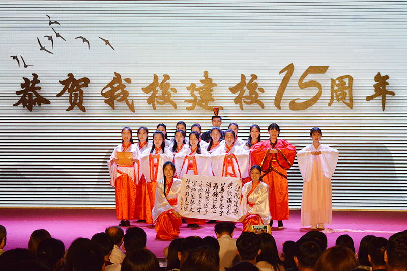 晚会在紫色荧光手影舞《夜空中最亮的那颗星》表演中拉开帷幕,共分为“语梦同行,你好青春”、“泱泱校园兮,学术百注”、“春风化雨,桃李芬芳”、“一杯敬远方,一杯敬成长”四个篇章。中英日韩四国语言的歌曲串烧,用优美动听的音乐旋律演唱出外国语言的特色与文化魅力;大合唱《我爱你中国》歌颂祖国,传递着大学生的爱国情怀,尽显青年学子的爱国修身、积极进取的良好风貌;英文朗诵《尊师重教,薪火相传》用诗词“令公桃李满天下,何用堂前更种花”向在场老师致敬;《拜师礼》传承圣贤智慧与拜师文化,弘扬师德精神,鼓舞学子学为人师,行为师范;诗朗诵《爱在文经》以青春的方式宣誓,体现外语学子对文经的赞美与眷恋之情。晚会期间,外语系还为响应两会精神,为评选出的“外语之星”的同学颁奖。共有11名同学分别荣获“学霸之星”、“进步之星”奖,五个寝室荣获“宿舍之星”奖。