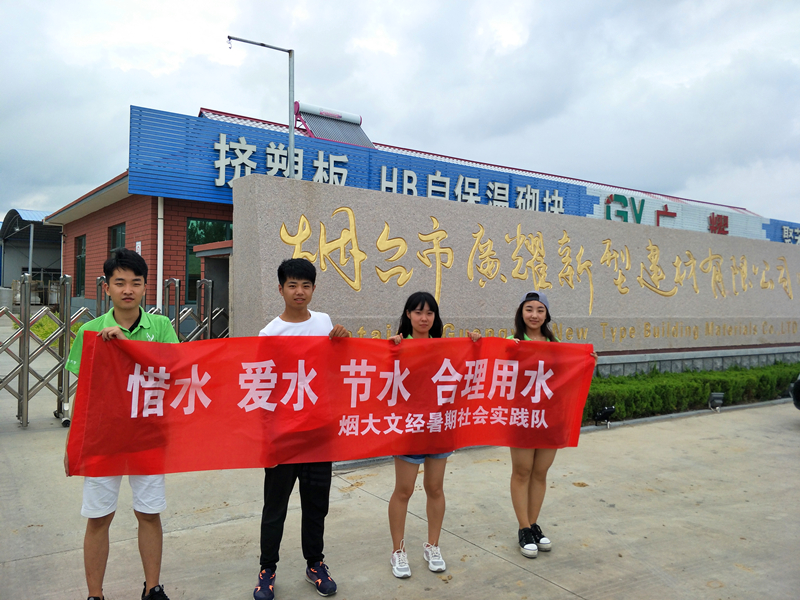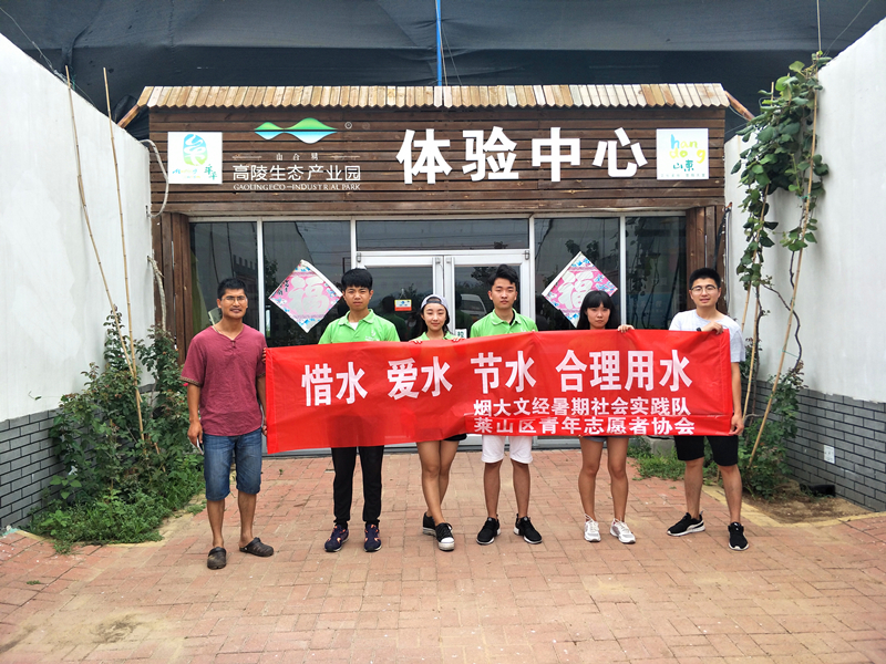 14日,实践队前往莱山区水利局,通过采访水利站及水政监察大队,队员们充分了解了莱山区今年的水资源状况,以及水利局为节水抗旱所采取的相关措施。15日,实践队来到牟平区高陵生态园进行考察,生态园负责人带领队员们参观并讲解了生态园的用水情况以及在节水方面采取的有效措施。当天下午,牟平区龙泉镇出现了实践队员们的身影,队员们冒雨考察了龙泉水库的情况,了解村里各个水井的灌溉面积、村民用水情况。16日,队员赶往位于栖霞市桃村镇的山东广耀集团参观,队员们学习了企业在采用节水制度和用水标准、建立污水处理厂和沼气池回收废水等方面的节水经验。