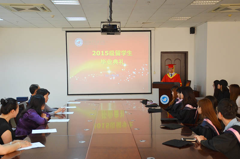 6月15日下午,我院首批韩国专升本留学生毕业典礼在二教六楼会议室举行,院长于光辉、副院长刘孔庆、文法系主任汤唯、建筑工程系主任辛翠香、对外交流合作部部长韩少明,毕业生导师以及全体留学生参加典礼。