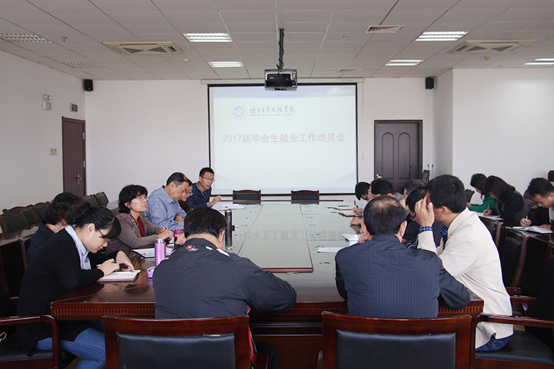 10月19日上午,2017届毕业生就业工作动员会在二教六楼会议室召开。副院长刘孔庆,各系党支部书记、副书记,团总支书记、副书记,招生就业部部长张琼玉,以及负责就业工作的老师与会。会议由招生就业部部长张琼玉主持。