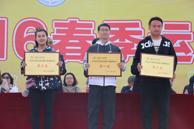 经历两天的激烈角逐,管理系荣获学生团体及男子组总分第一名,文法系夺得教工组及女子组团体总分第一名,经济系、文法系、管理系、教工三队、教工四队、图书馆获得道德风尚奖。颁奖仪式后,全体师生共同欣赏了健美操、跆拳道、双节棍、巴西柔术、散打等精彩闭幕式表演。