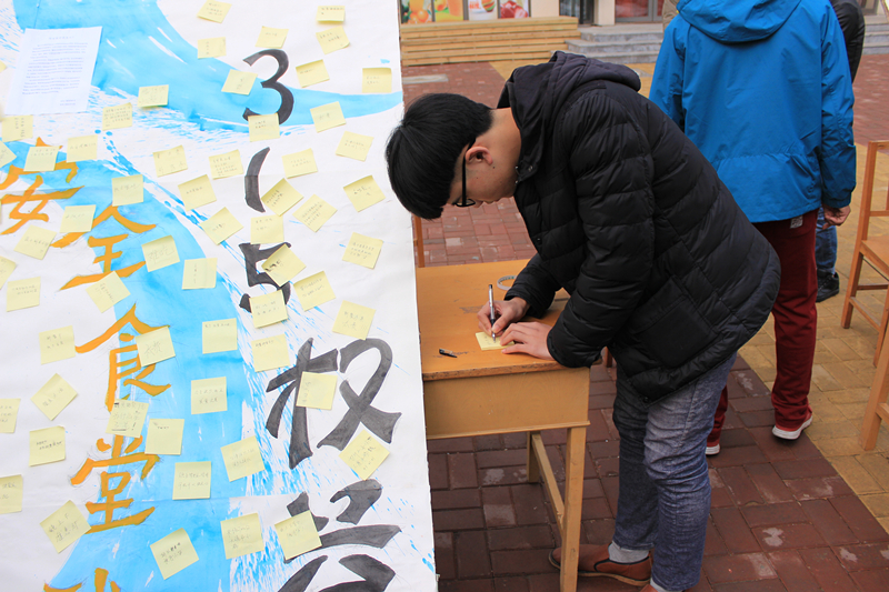此外,在校内,各系也开展了形式多样的普法维权活动。经济系针对网络诈骗问题,开展了“网购消费进校园”活动,号召学生运用法律武器来维护自身的合法权益;会计系以“情系315,创双赢校园”为主题举办维权签字活动,收集同学们对学校商家的意见及关于维权活动的建议,并进行整理反馈;信息工程系以“倡导诚实守信,共铸消费和谐”为主题,于新餐厅前陈列展板,进行多角度、多载体普法宣传;文法系印制了500张消费维权宣传页,并要求辅导员、班主任利用课余时间到宿舍讲解用电安全和防诈骗的手段和做法,提醒同学们维护好自身安全与合法权益;机电工程系在第三餐厅门口发起了“食堂安全我来议”的征集活动;管理系联合院学生会在学院餐厅共同举办了以“新消费,新维权”为主题的活动。