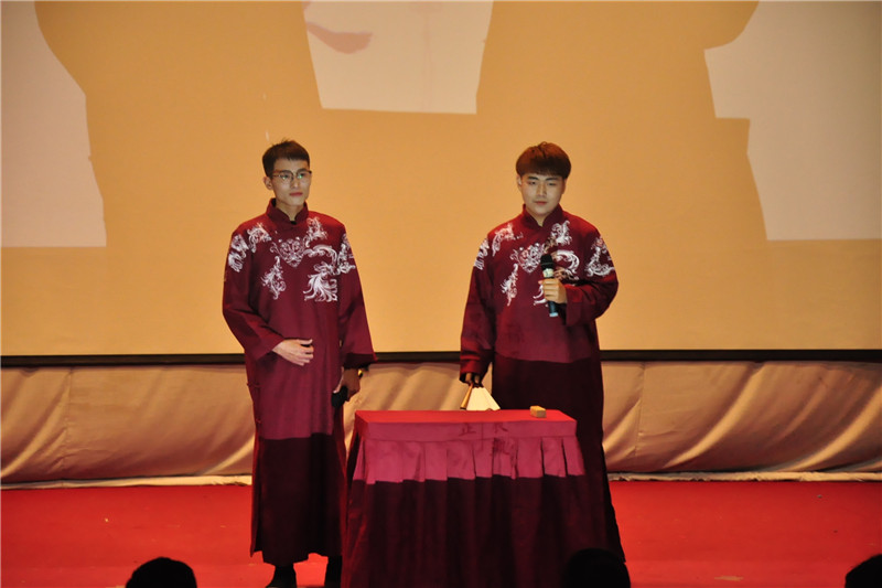 70年的峥嵘岁月,到如今美好和谐的社会;祖国从满目疮痍到青山绿水,从战争不断到和平盛世,经历了无数坎坷。朗诵《我的祖国,我的梦》带领同学们一起见证了祖国的美好明天与对祖国的最真挚的祝愿;歌曲《你曾是少年》,甜美的歌声、青春活泼的身影带领同学们回忆起那些单纯美好时光;小品《邮轮风云》中,主持人幽默且富有节奏的话语引发观众们一次又一次的大笑,两位师兄的“别有用心”,令人感动至深;多乐器演奏《沧海一声笑》令观众为之震撼。