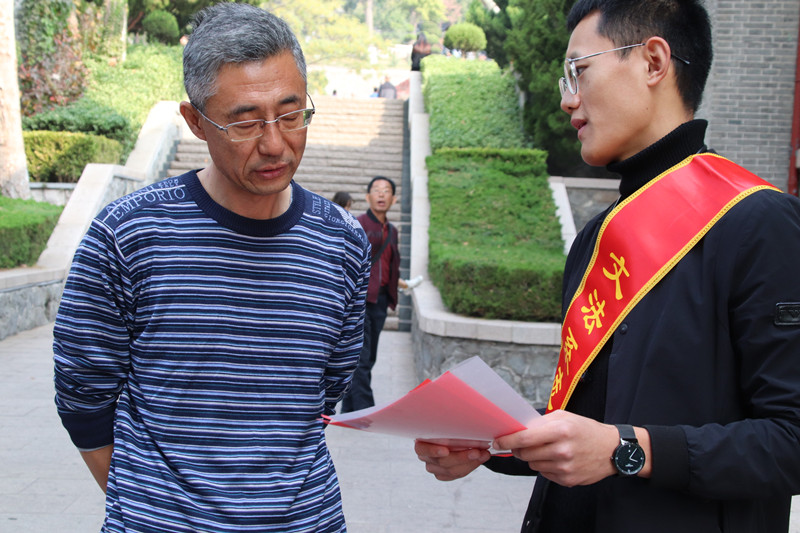 志愿者们分散到烟台山景区各处,通过发放宣传单的方式提醒游客禁止在林区内进行吸烟、野炊等野外用火行为,并向游客普及相关的森林防火以及环保知识,如烟台市的森林防火期、烟台全市设置统一的森林火警电话等。志愿者们时刻牢记本次志愿服务的“保护环境”的主题,自发捡拾了景区内的垃圾,确保景区的环境整洁,为环境保护做出了自己的一份贡献。文法学子的热情负责和游客们的积极配合,使本次志愿服务活动取得明显效果。