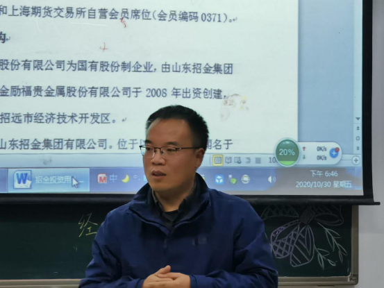 大会伊始,通过播放宣传片、PPT演示、面对面交流等方式向同学们介绍公司的概况、职业发展方向、取得成就以及人员需求等。招金集团徐佰超讲师介绍了企业文化,并详细介绍了集团相关背景和概况,并阐明了相关的招聘要求以及招聘人数,针对相关的岗位做了进一步的说明和介绍,让同学们深入了解今后就业的发展方向。经济系11届毕业生刘中山向同学们分享了毕业九年从事经济行业的工作经验,结合自身规划让学生对未来的就业前景有了总体的规划。