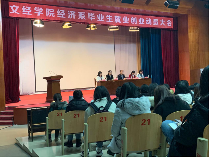 为促使毕业生调整良好就业创业心态,认清就业创业形势,积极转变就业创业观念。12月11日经济系于一教207多功能厅举办2021届毕业生就业创业动员大会。执行主任徐雪峰、党总支书记杨帆、教研室主任孙少叶、教师宫婧雪、辅导员张晓云以及全体毕业生参加了此次会议。