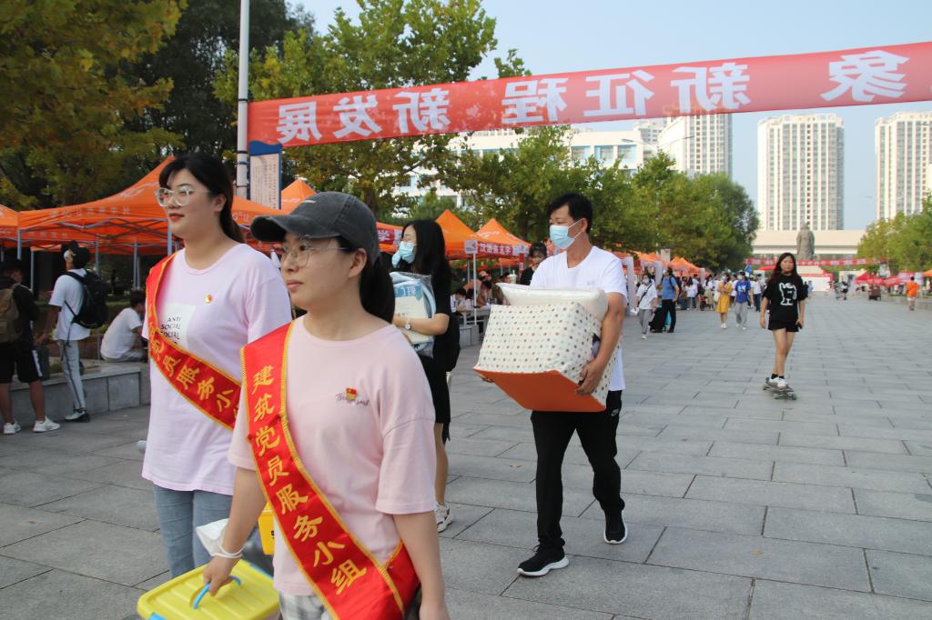 迎新当日,道路两侧,宿舍楼外,建筑工程学院的志愿者、党员先锋们穿梭在迎新标语指示牌其中,他们积极协助21级新生班主任和班助办理新生入学手续、住宿宿舍安排、介绍学校相关情况,并为新生同学搬运行李让舟车劳顿的新生尽快来到宿舍安顿下来。更是有不少已经报到的新生同学积极加入到志愿者团队中来,为学院志愿者分担工作。尽己所能,帮助后来报到的同学搬运行李,耐心地为新生同学提供帮助和指引,无不让初来乍到的新生感受到温暖。