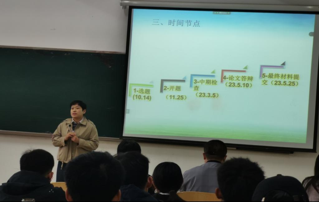 徐红梅向大家简要介绍了毕业设计的相关内容及情况,并特别强调了毕业设计的重要性。毕业设计不仅关系到每位同学的毕业情况,更是对同学们大学四年所学知识的检验和试炼。她希望同学们引起足够的重视,认真完成毕业设计的全部内容。