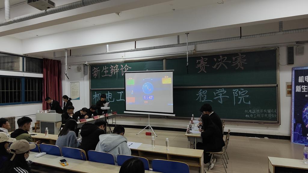 10月29日,机电工程学院在一教102开展主题为“对当代青年而言,胜人/胜己更重要”的学生辩论比赛。本次比赛由机电工程学院辩论队一队(邓兆运、赵项龙、赵兰贺、苏本科)担任正辩;二队(王建孝、胡程凯、赵庶康、赵欣宇)担任反辩,机电工程学院学生会和22级新生代表出席本次比赛。