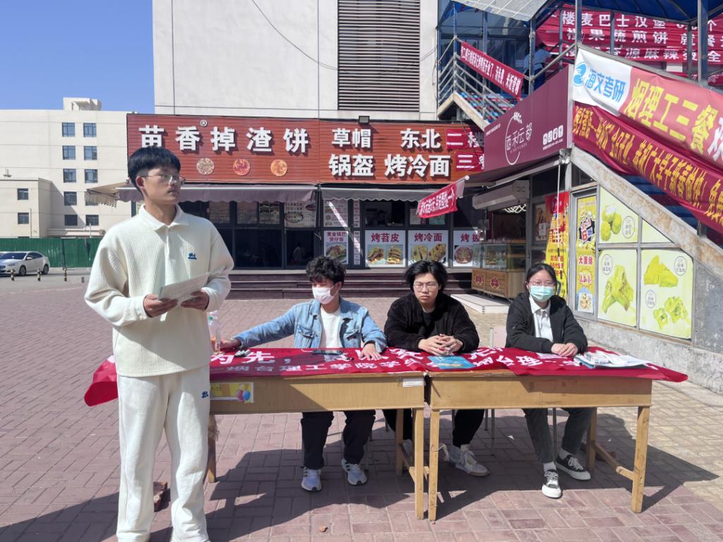 本次活动通过设置调查点和宣传站,采取调查问卷和分发宣传册的方式,调查学生对于食堂超市的评价及建议,向同学发放关于食品安全的宣传册,对同学进行食品安全知识宣讲普及。