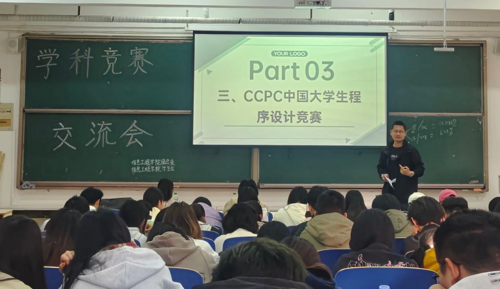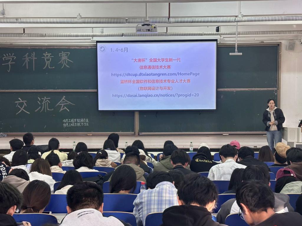 4月24日下午,信息工程学院于一教101组织开展学科竞赛交流会。各学科竞赛指导老师康凤、荆蕾、李蕴、徐向美、杨昌玉以及24级全体同学参与此次交流会。