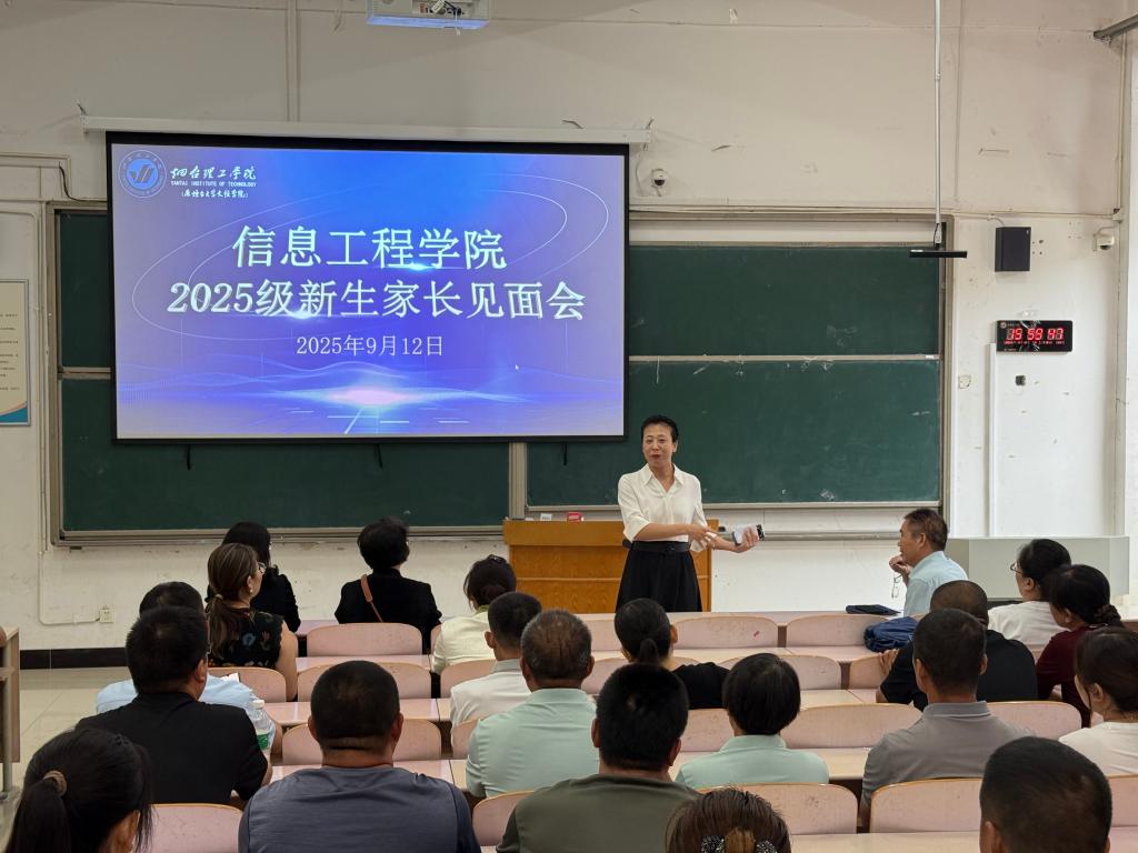 为深化家校协同育人机制,帮助家长全面了解我校育人理念与培养模式,9月12日下午,信息工程学院于二教111举行2025级新生家长见面会。学院党总支副书记王明印、副院长康凤,团总支书记祝箐及25级新生家长参加。