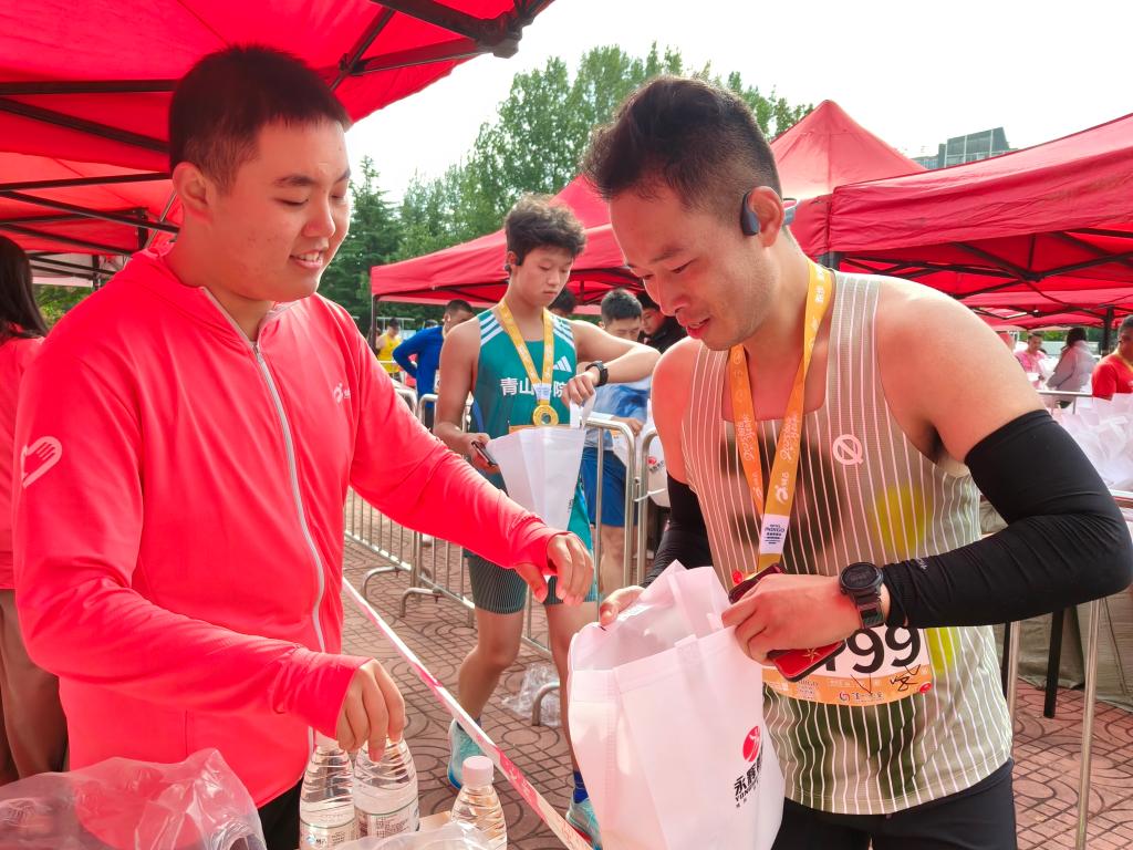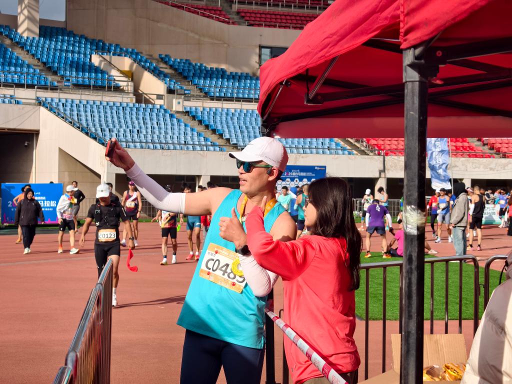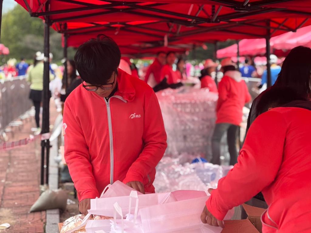 赛日凌晨4点半,志愿者们于学校北门集合,乘统一车辆奔赴岗位后迅速进入工作状态。存取衣区志愿者细心整理装备,指引组提前熟悉路线以备解答疑问,检录区、收容区志愿者则忙着摆放物资、调试设备,用忙碌身影让赛场氛围升温。发令枪响后,我校17个岗位的志愿者默契协作,分流指引岗维护起跑与完赛秩序、关注选手身体状况,核心保障岗紧盯撞线流程、记录成绩并协助兴奋剂检测,补给后勤岗提供高效存取衣、嘉宾服务及摆渡车引导,完赛氛围岗通过发放奖牌、协助拉伸、呐喊助威等方式,全方位守护赛事全程。