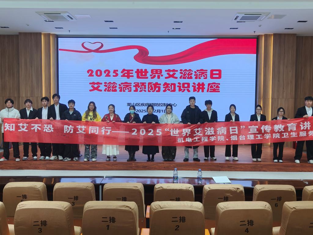 为深入贯彻教育部、国家卫生健康委关于加强新时代高校预防艾滋病教育工作的部署要求,落实“健康中国”战略对青年学生健康素养的培育目标。12月1日,恰逢第38个“世界艾滋病日”机电工程学院联合校卫生服务站,特邀莱山区疾病预防控制中心艾滋病防制科科长孙贺在综合楼6楼报告厅开展“守护自我 齐心防艾”主题专题讲座,参加会议的有校卫生服务站副院长张婷婷,护士长陈娜以及2025级部分学生。